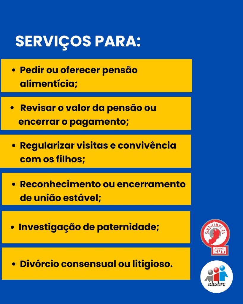 O Idesbre oferece atendimento jurídico para filiadas e filiados ao Sindilimpe-ES, garantindo orientação e apoio em diversas questões importantes do dia a dia.