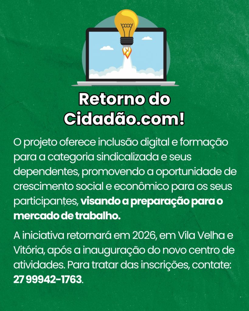 O projeto vai oferecer inclusão digital e formação para trabalhadoras/es sindicalizadas/os e seus dependentes, contribuindo para o crescimento social e a preparação para o mercado de trabalho.